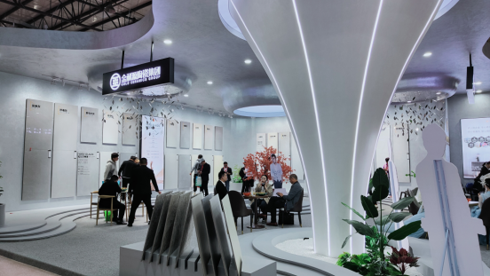 天瑞陶瓷展位展示了金剛石玉、星河巖板等系列產(chǎn)品,具有綠色環(huán)保、高效抗污、低吸水率、耐酸耐磨等多種優(yōu)良性能,眼觀之如原石觸感,手觸之質(zhì)感細膩,吸引眾多關注。