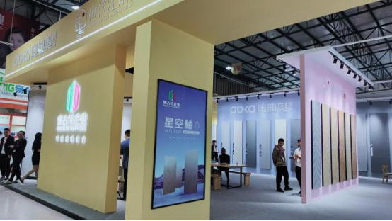 奧古特專注高端仿古磚研發(fā)與生產(chǎn),展館內(nèi)展示了各種品類的仿古磚。旗下三大品牌:奧迪奧、世代江南、和之家均展示了主推產(chǎn)品“素色星空釉”系列,產(chǎn)品規(guī)格涵蓋600×1200㎜、800×800㎜等。