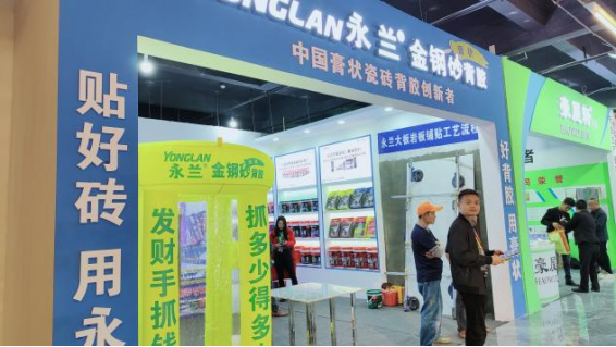 廣州瓷添樂建材是一家專業(yè)生產(chǎn)瓷磚粘貼輔料的國家級高新技術企業(yè),此次展位設計裝飾明亮,展示了瓷磚背膠、瓷磚膠、巖板點貼膠、砂漿膠、美縫劑、防水涂料、界面劑等各類專業(yè)輔材。