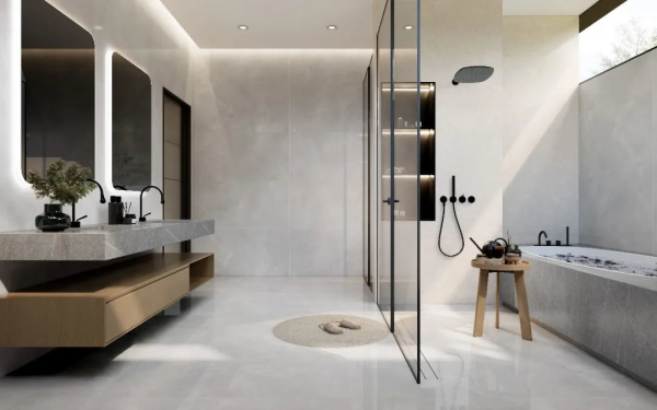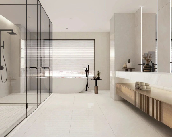 而在選磚方面,相較于穩(wěn)妥而傳統(tǒng)的400×800mm、450×900mm瓷磚,越來越多消費(fèi)者更鐘情于600×1200mm,無論上墻下地還是廚房、浴室等多場景,均可完美契合裝飾需求實(shí)為跨界應(yīng)用首選。