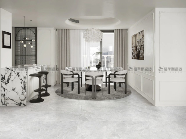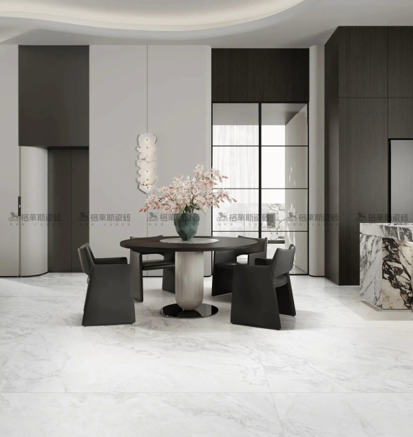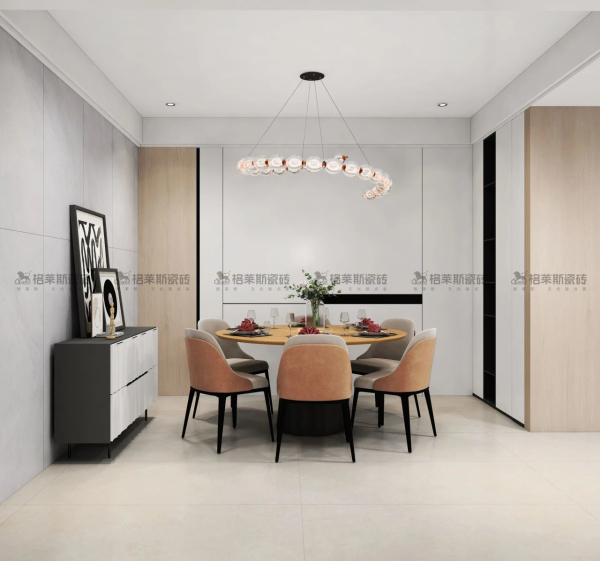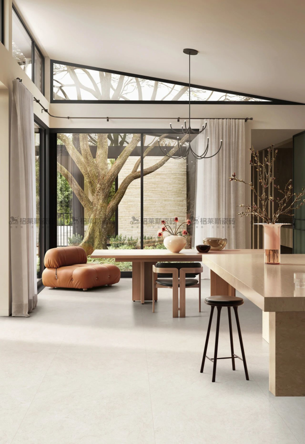 平衡的原生色系是自然中最耐看、最經(jīng)典的和諧的配色,給人平和自恃的舒緩雅致,磚面淡淡雪白的紋理如梨花漫天飄揚,如飛絮漫過無垠的蒼穹,云淡風(fēng)輕地把自然納入家中。