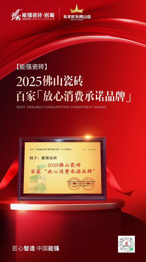 匠心榮耀丨能強瓷磚被授予2025佛山陶瓷百家“放心消費者承諾品牌”