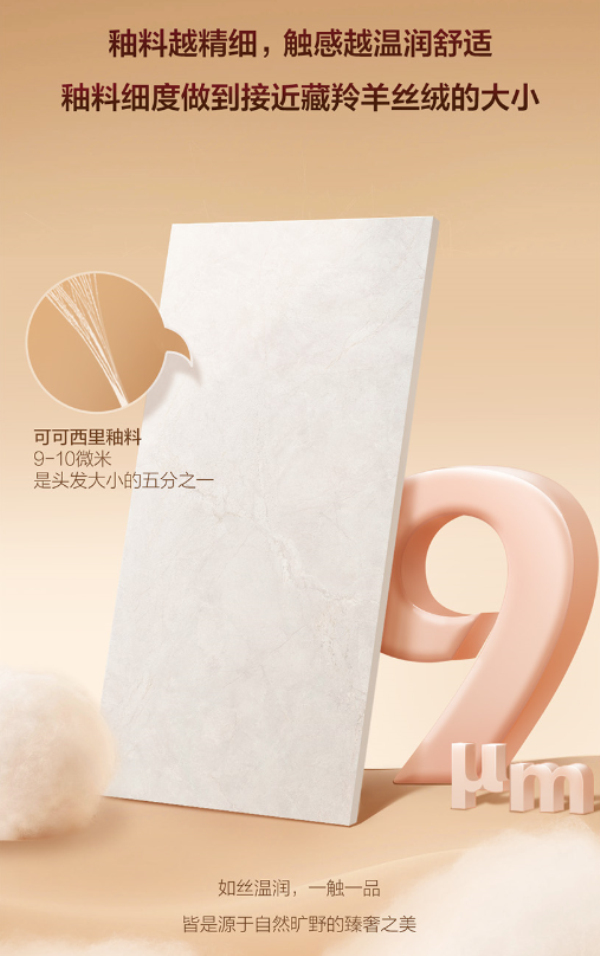 可可西里系列不僅在外觀上追求極致,更在觸感上實現(xiàn)了突破。通過金絲絨復(fù)刻釉2.0技術(shù),瓷磚表面呈現(xiàn)出羊絨般的細(xì)膩觸感,讓家居空間不僅美觀,更具備舒適的觸感體驗。