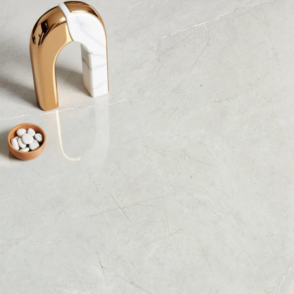 介于奶油白與焦糖之間,任意無限連的細(xì)膩大理石紋理,訴說著歲月的故事,光照下閃爍的金色脈絡(luò),如同在時(shí)間長河中淘洗出的珍貴寶藏,為空間注入溫暖的光芒與流動(dòng)的奢華感。