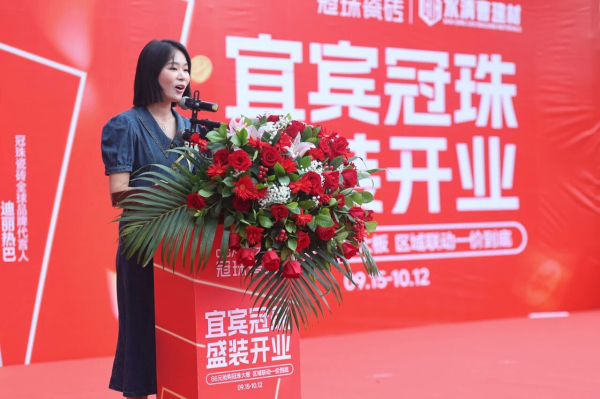曹建材商貿有限公司副總經理、宜賓冠珠瓷磚總經理曹海祥發(fā)表致辭。她表示,宜賓冠珠擁有一支專業(yè)且高素質的服務團隊,致力于為宜賓市民提供全方位、貼心、便捷的精細化服務,相信依托冠珠瓷磚強大的品牌力及高標準服務體系,宜賓冠珠定能助力業(yè)主朋友們,打造一個滿意、放心、美好的家。