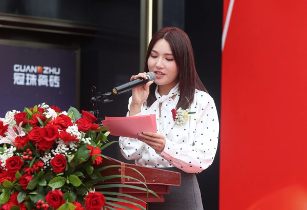 曹建材商貿有限公司副總經理海翼向所有到場的嘉賓領導表示熱烈的歡迎和誠摯的感謝,并發(fā)表致辭。她提到,作為冠珠瓷磚優(yōu)秀經銷商代表之一,宜賓冠珠的盛裝開業(yè),是與品牌深化戰(zhàn)略合作、共拓市場版圖的又一重要里程碑,期待與合作伙伴們繼續(xù)攜手同行,為宜賓當?shù)叵M者帶來更多高品質家居體驗。