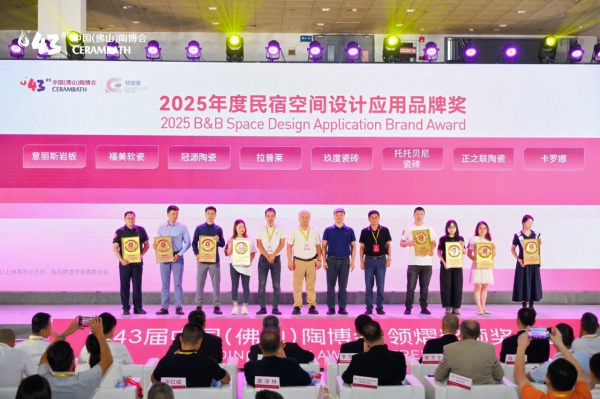 頒獎典禮上,依次揭曉并頒發(fā)了【領(lǐng)熠獎-2025年度陶瓷行業(yè)領(lǐng)軍品牌獎】、【領(lǐng)熠獎-2025年度杰出品牌獎】、【領(lǐng)熠獎-2025年度品類冠軍獎】、【領(lǐng)熠獎-2025年度原創(chuàng)品牌獎】、【領(lǐng)熠獎-2025年度人氣品牌獎】、【領(lǐng)熠獎-2025年度酒店空間設(shè)計應(yīng)用品牌獎】及【領(lǐng)熠獎-2025年度民宿空間設(shè)計應(yīng)用品牌獎】七個細(xì)分獎項。