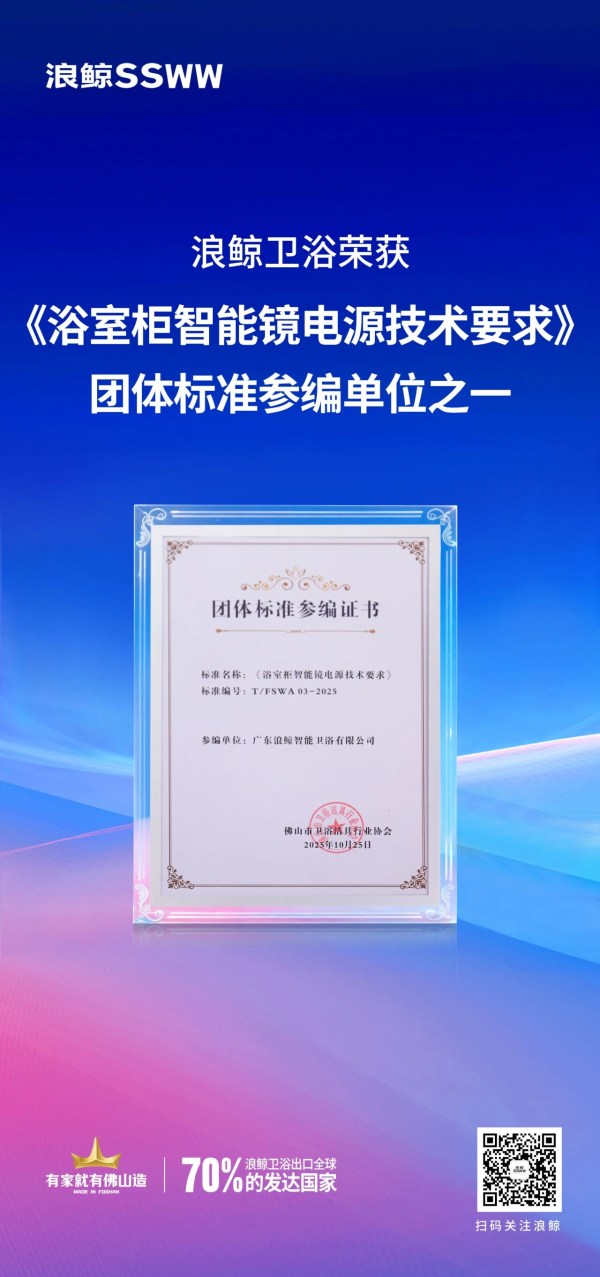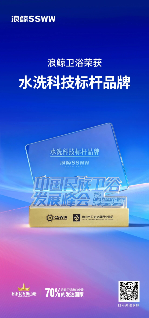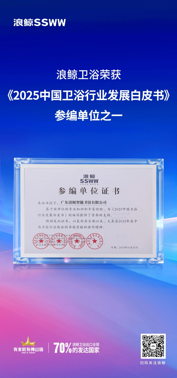 10月25日,2025中國民族衛(wèi)浴發(fā)展峰會在廣東佛山盛大召開。會上,浪鯨衛(wèi)浴憑借卓越的品牌實力榮獲“水洗科技標(biāo)桿品牌”,并以行業(yè)專業(yè)知識和經(jīng)驗成為《2025中國衛(wèi)浴行業(yè)發(fā)展白皮書》及《浴室柜智能鏡電源技術(shù)要求》團(tuán)體標(biāo)準(zhǔn)參編單位之一。
