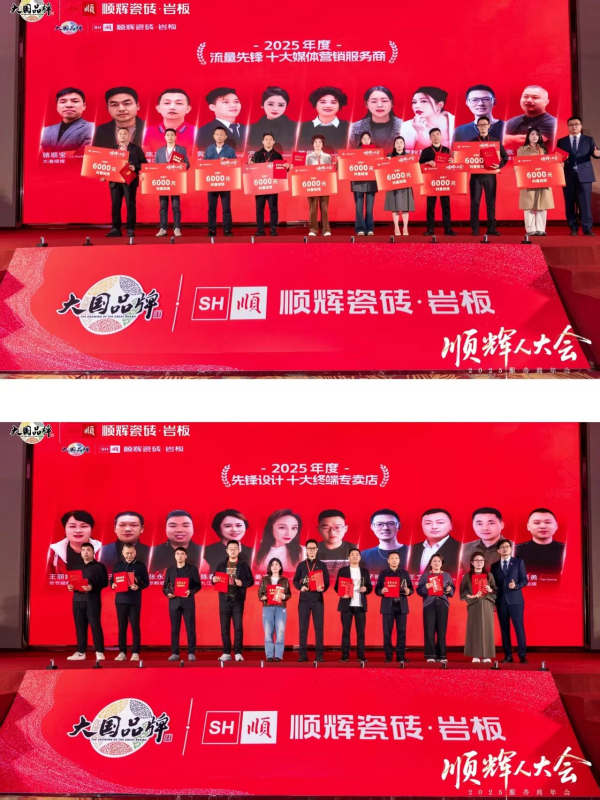 品牌的發(fā)展,離不開每一位順輝家人的辛勤付出。為了表彰年度表現(xiàn)杰出的順輝家人,會議依次頒發(fā)了“2025年度流量先鋒 十大媒體營銷服務(wù)商”“2025年度先鋒設(shè)計(jì) 十大終端專賣店”以及分級經(jīng)銷商等獎(jiǎng)項(xiàng),并壓軸揭曉年度“十大風(fēng)云人物”。他們以卓越的市場業(yè)績與品牌忠誠,為全體順輝家人樹立了學(xué)習(xí)的標(biāo)桿。這份沉甸甸的榮譽(yù),是對他們奮斗成果的最高致敬。