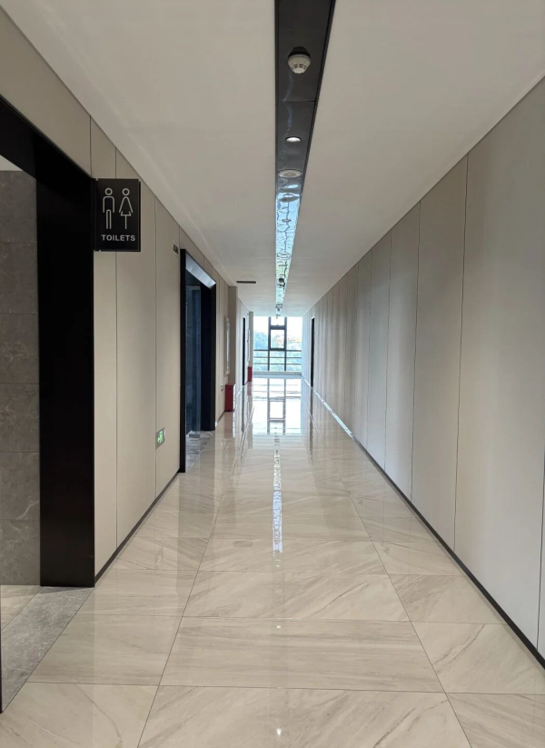 SPC石晶墻板采用的白色布紋設計,以極簡美學演繹現(xiàn)代商務空間的質感與格調。純凈的白色基調搭配細膩的布紋肌理,為樓層通道空間注入明亮而溫馨的氛圍,既保持了商業(yè)空間應有的專業(yè)感,又打破了傳統(tǒng)辦公空間的冰冷與單調。