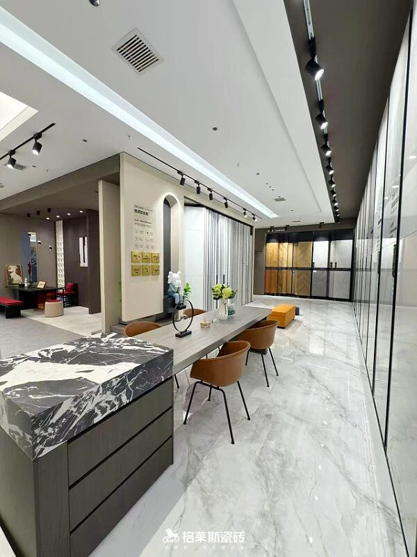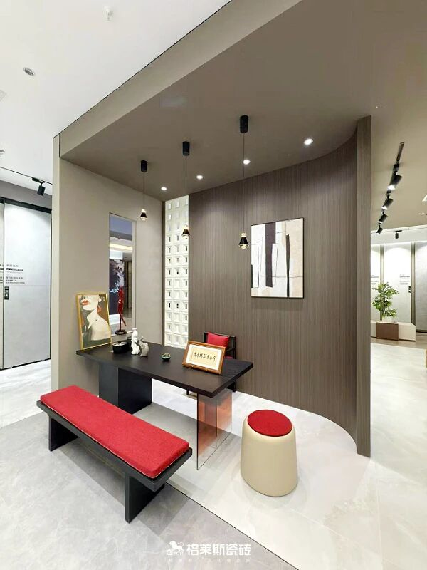 展廳還融入了大量交流和互動的空間,洽談室的設計為客戶帶來更為放松的交流環(huán)境,而綠材石晶墻板的大量應用不僅提升了空間品質,也成為不同材料搭配展示的可參考樣板,讓家裝有了更多多元性,這是格萊斯瓷磚+新明珠綠材多品類融合的模式在終端落地的具體實施,具有戰(zhàn)略指導意義。這一舉措也將重構終端場景,從賣瓷磚單點突破到生態(tài)協(xié)同共贏,實現(xiàn)產業(yè)鏈的延伸,開拓新的增長空間。