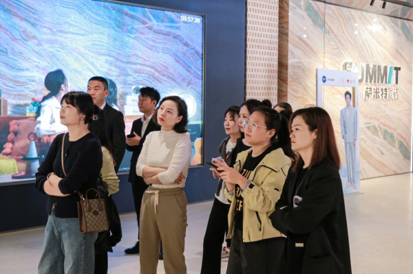 會(huì)后,在薩米特團(tuán)隊(duì)的引導(dǎo)下,創(chuàng)藝裝飾一行走進(jìn)總部展廳實(shí)地探展。