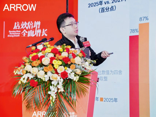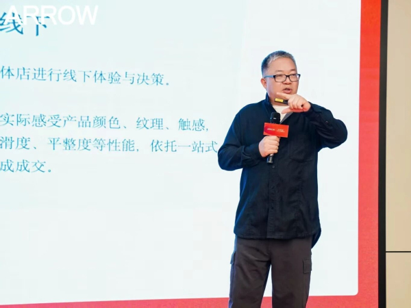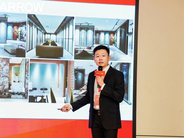圍繞終端門店的變革趨勢與進化方向,箭牌瓷磚事業(yè)部展廳設計總監(jiān)吳琦進行了專題分享。他指出,終端門店正經(jīng)歷從產(chǎn)品陳列向場景體驗的轉型升級,并介紹了全新的A6 pro標準門店模型,強調將通過空間設計、場景營造與店態(tài)升級,系統(tǒng)提升終端形象與體驗價值,助力經(jīng)銷商以“空間美學”驅動銷售轉化。