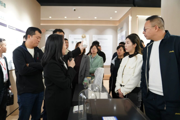 隨后,考察團(tuán)參觀新明珠綠材展廳,重點(diǎn)調(diào)研了新明珠在綠色產(chǎn)品研發(fā)與環(huán)保建材推廣方面的最新進(jìn)展。雙方就綠色建材在現(xiàn)代建筑工程中的應(yīng)用性能、低碳標(biāo)準(zhǔn)及環(huán)保價(jià)值進(jìn)行了現(xiàn)場(chǎng)交流,深入探討了提升建筑產(chǎn)業(yè)鏈綠色化水平的有效路徑。