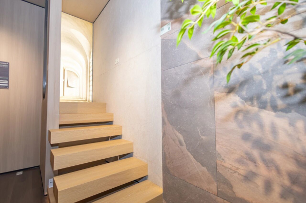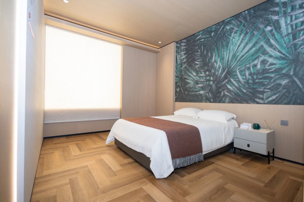 展廳地面摒棄傳統(tǒng)水泥砂漿“濕作業(yè)”,采用石晶地板與干法施工技術(shù)。該工藝鋪貼便捷,大幅縮短工期,同時(shí)杜絕了現(xiàn)場粉塵與泥水污染,實(shí)現(xiàn)綠色潔凈施工。石晶地板具備耐磨、防滑、耐污等優(yōu)異性能,可靈活適用于商業(yè)、辦公及家居等多類場景。