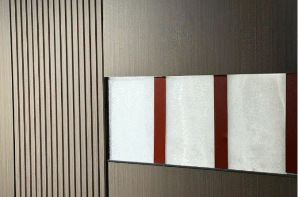 項(xiàng)目創(chuàng)新采用石晶墻板系統(tǒng)。板材之間通過精密的鎖扣榫卯結(jié)構(gòu)連接,并配合專用鋁材進(jìn)行收口。這種設(shè)計(jì)不僅實(shí)現(xiàn)了墻面的快速拼接安裝,更能輕松塑造彎弧、折角等多樣化的立體造型與裝飾效果,兼顧了工業(yè)化生產(chǎn)的效率與個(gè)性化設(shè)計(jì)的美學(xué)需求。