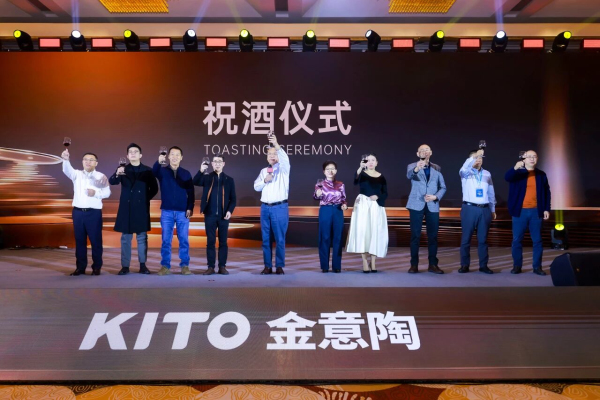 華燈初上,盛宴開席。金意陶人齊聚一堂,舉杯共賀嶄新征程。在燈火如星的夜色中,歡聲笑語與杯盞交錯相映,真摯的情誼與智慧的火花在此刻流淌。中國建筑衛(wèi)生陶瓷協(xié)會會長謬斌、中國陶瓷工業(yè)協(xié)會副理事長侯文全、佛山市陶瓷行業(yè)協(xié)會會長尹虹發(fā)表致辭,同時金意陶集團(tuán)副董事長黃雪芬?guī)碇悄芗揖又黝}演講,分享金意陶在智暖模塊的創(chuàng)新產(chǎn)品與服務(wù)。
