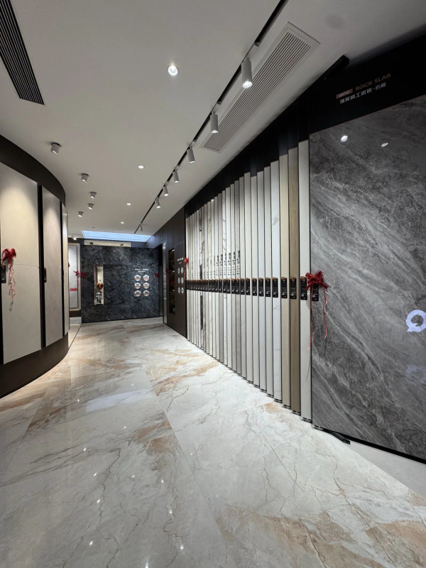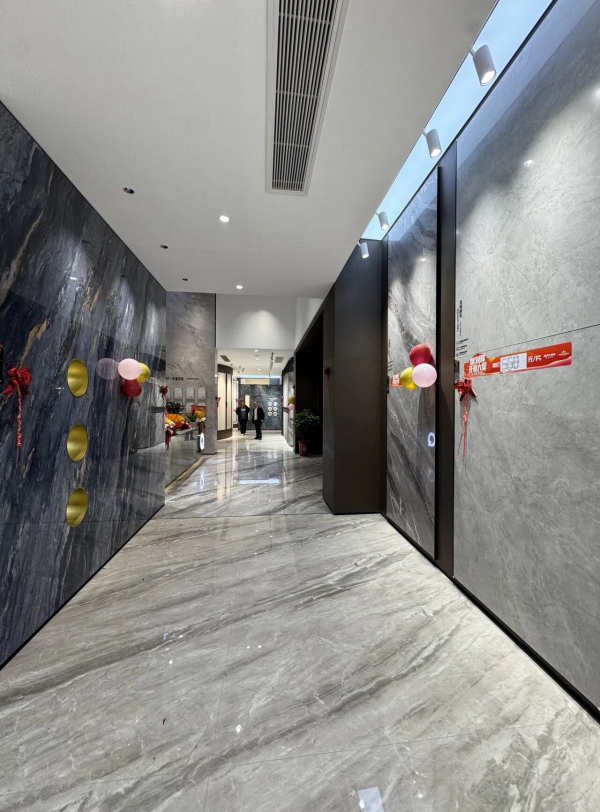 踏入空間,簡約大氣的巖板背景墻與自然肌理交織成詩,金屬LOGO成為點(diǎn)睛之筆,在柔光中熠熠生輝。