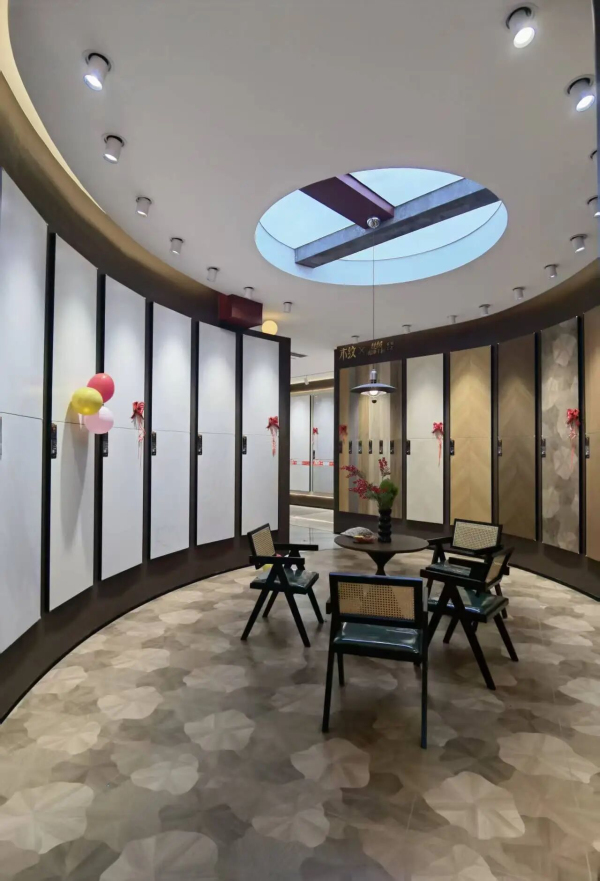 圓弧的造型柔化了空間的棱角,帶著恰到好處的松弛感,為整個(gè)展廳注入別樣的高級氣質(zhì)。