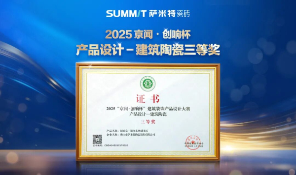 近日,薩米特瓷磚探索家・銀河系列憑借卓越的產(chǎn)品表現(xiàn)力,在全國人大會議中心舉辦的2026建筑裝飾材料流行趨勢發(fā)布大會暨2025京聞・創(chuàng)響杯建筑裝飾產(chǎn)品設計大賽頒獎典禮上,榮耀摘得“產(chǎn)品設計 - 建筑陶瓷三等獎”。