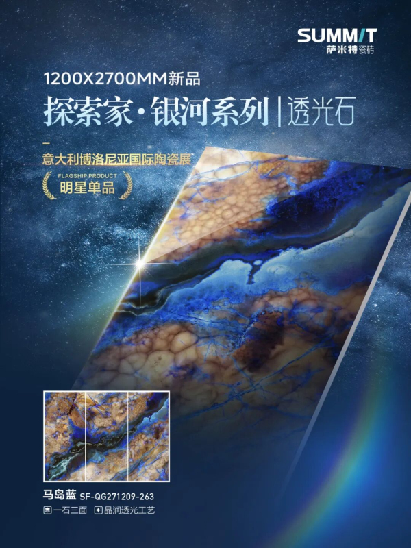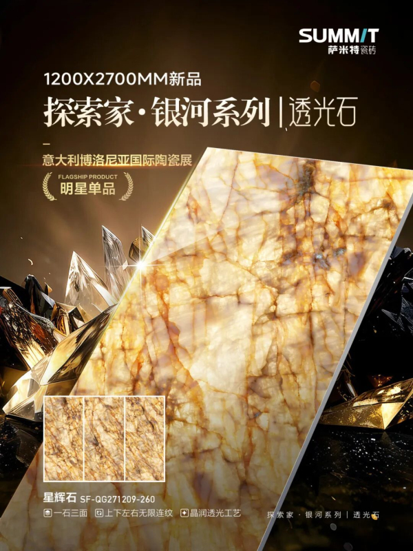 薩米特瓷磚探索家·銀河系列以衛(wèi)星遙感影像中的地球宏闊地貌為靈感源泉,將天地山河的磅礴氣韻凝于方寸磚面。依托前沿晶潤透光工藝,以高清通透干粒釉料科學配比為基底,成功打造“通透質感、立體肌理、星河光韻”三重高階美學效果,讓瓷磚超越裝飾本身,成為承載自然藝術與科技力量的空間臻品。