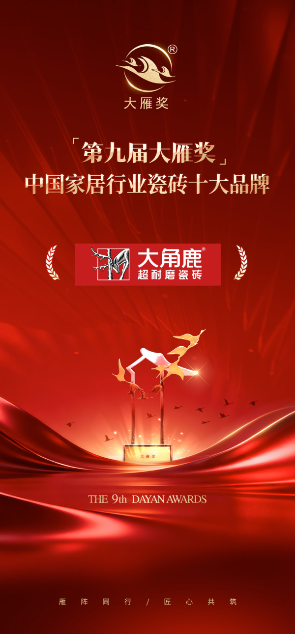 權(quán)威認(rèn)證!大角鹿瓷磚榮獲「大雁獎」中國家居行業(yè)瓷磚十大品牌