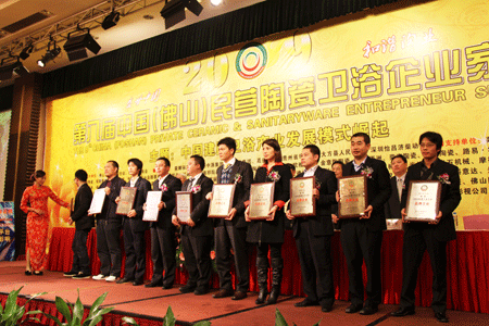 2009年12月18日,由佛山市工商業(yè)聯(lián)合會(huì)和佛山市總商會(huì)主辦的“2009第八屆中國(guó)(佛山)民營(yíng)陶瓷衛(wèi)浴企業(yè)家年會(huì)”在佛山皇冠假日酒店四樓萬豪殿國(guó)際會(huì)議中心隆重舉行,作為陶瓷行業(yè)一年一度的盛會(huì),匯聚了協(xié)會(huì)領(lǐng)導(dǎo)、行業(yè)資深專家、企業(yè)負(fù)責(zé)人等眾多業(yè)內(nèi)外精英,會(huì)議座無虛席,氣氛熱烈。