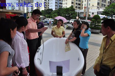 作為高端休閑衛(wèi)浴品牌,英皇極少采取讓利促銷的營銷手段,因此本次全國范圍的大讓利活動則對消費(fèi)者更加具有吸引力。首先在佛山拉開的“英皇14周年慶典”大型促銷活動作為第一站,于每周末搶占佛山各區(qū)黃金商業(yè)中心位置進(jìn)行戶外展銷,為消費(fèi)者帶來包括剛在上海展上引起轟動的藝術(shù)衛(wèi)浴產(chǎn)品——限量版全手工制作的“皇家之星”浴缸在內(nèi)的10余款2010全新上市產(chǎn)品,其中“皇家之心”浴缸以獨(dú)特優(yōu)美的造型及華麗的金箔馬賽克外觀吸引了眾多消費(fèi)者駐足聞訊觀摩,更有消費(fèi)者表示這是他們見過最漂亮的浴缸,印象非常深刻。在眾多回饋?zhàn)尷唐分校悄荞R桶、淋浴隔斷等產(chǎn)品都顯示出超強(qiáng)的性價比優(yōu)勢,獲得消費(fèi)者青睞。在促銷現(xiàn)場可以看到,盡管6月的佛山天氣已經(jīng)非常炎熱,但優(yōu)質(zhì)的產(chǎn)品及驚喜的價格依然匯集了大量人氣,本月佛山最后一次促銷活動將于26、27日在東方廣場進(jìn)行,其后將在貴陽、太原等全國各地陸續(xù)開展大型歡慶活動,介時將帶給大家更多更大的驚喜。