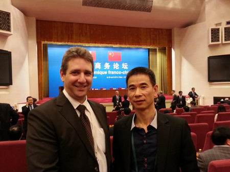 全友衛(wèi)浴總經(jīng)理施冰(左)與法國企業(yè)代表在中法商務(wù)論壇合影