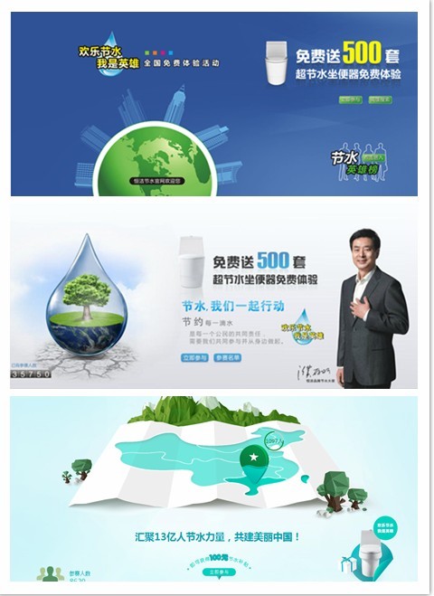依次為2011年-2013年歷屆恒潔衛(wèi)浴節(jié)水網(wǎng)絡活動主畫面