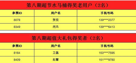 2013年恒潔衛(wèi)浴“節(jié)水大使”網(wǎng)絡征集活動最后一期幸運中獎者名單