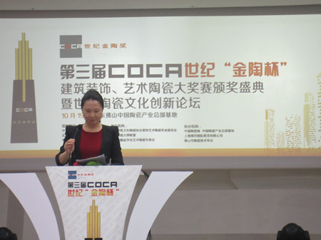 中國陶瓷城集團有限公司常務副總裁兼商業(yè)運營中心總經(jīng)理余敏在致辭時表示,COCA世紀金陶獎以其干凈純粹,代表著中國現(xiàn)代裝飾、藝術陶瓷的真正高度。本次金陶獎由上海移師佛山,中國陶瓷城、陶瓷總部接過這個棒子后誓將金陶獎公平、公開、公正的原則傳承下去,并且不斷地升華優(yōu)化,從而加快佛山乃至中國陶瓷產(chǎn)業(yè)的轉型升級,同時進一步鞏固中國陶瓷在全球的中心地位。