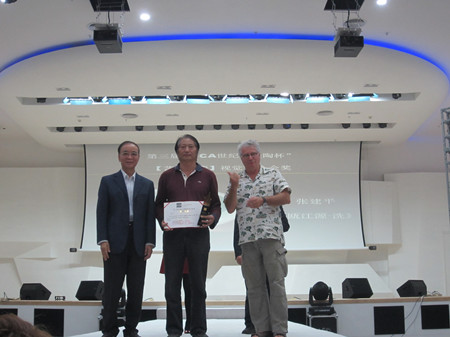 田部長和杰克考夫曼為藝術陶瓷金獎獲獎者頒獎