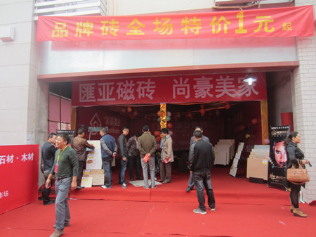 開業(yè)當(dāng)日,匯誠陶瓷市場(chǎng)在開業(yè)慶典之際還精心策劃和組織了匯誠建材電子商城平臺(tái)的開通和陶瓷博覽會(huì)的開展,用立體“轟炸”方式使得匯誠陶瓷市場(chǎng)在當(dāng)?shù)匾慌e成名,再輔之以具有強(qiáng)大的價(jià)格吸引力的千人團(tuán)購活動(dòng),開業(yè)現(xiàn)場(chǎng)場(chǎng)面熱鬧,效果非凡,廣大消費(fèi)者蜂擁而至。