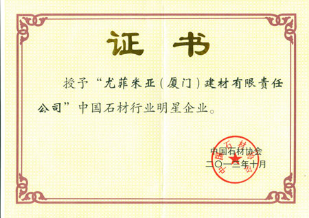 尤菲米亞石磚榮獲“中國石材行業(yè)明星企業(yè)”