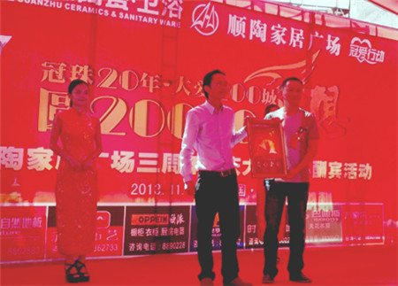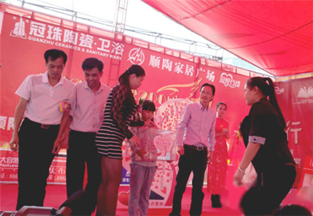 自由募捐環(huán)節(jié),嘉賓業(yè)主們紛紛解囊,一位家境較差的裝修工也慷慨捐出200元。“雖然我拿不出很多錢,但還是想通過這次活動盡一份自己的心意。”而在愛心認購環(huán)節(jié),許多業(yè)主們更是積極參與其中——瓷片1元1片,大家每買1片瓷片就為大涼山的孩子捐了1塊錢。除此之外,活動還推出了下定送金條、聯(lián)盟訂購返還現(xiàn)金、砸金蛋中現(xiàn)金、買衛(wèi)浴大抽獎等令人心動的優(yōu)惠,給信宜的消費者帶來了實實在在的好處。一位剛剛領(lǐng)到超級厚禮包的女業(yè)主笑得合不攏嘴:“買了冠珠瓷磚,既解決了新房裝修的大難題,又做了善事,還拿了大禮包,真是一舉三得!”
