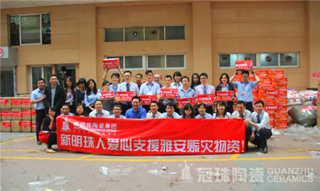 4月20日,四川雅安發(fā)生7.0級大地震。新明珠集團黨委、團委、婦委、工會和旗下第一品牌冠珠陶瓷在第一時間行動起來,迅速發(fā)起“冠愛行動·雅安平安”愛心募捐活動,積極組織新明珠全體員工和社會各界捐款,及時將大米、食用油、棉被等愛心物資第一時間送抵災區(qū),為災區(qū)同胞度過難關(guān)盡了一份心意和力量。