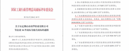 2014年1月13日,在國(guó)家工商行政管理總局新認(rèn)定的一批中國(guó)馳名商標(biāo)中,“東鵬”商標(biāo)榜上有名。東鵬喜獲潔具衛(wèi)浴類馳名商標(biāo),成為首家在瓷磚和潔具衛(wèi)浴都擁有中國(guó)馳名商標(biāo)的企業(yè)!這是對(duì)東鵬品牌綜合實(shí)力、市場(chǎng)表現(xiàn)力、還有消費(fèi)者的公信力等各方面的高的認(rèn)可和肯定,同時(shí)也給東鵬新一年的發(fā)展帶來(lái)了有力的鼓舞。
