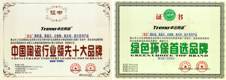 2014年,卓遠陶瓷發(fā)展再上新臺階,在品牌發(fā)展的第十一個年頭,喜訊不斷傳來。3月伊始,喜訊再次傳來,卓遠陶瓷意外斬獲“中國陶瓷行業(yè)領先十大品牌”和“綠色環(huán)保首選品牌”兩大盛譽,成為繼榮獲中國馳名商標、即將強勢登陸央視、首月銷售業(yè)績創(chuàng)歷史新高后,實力榮歸的強大印證!