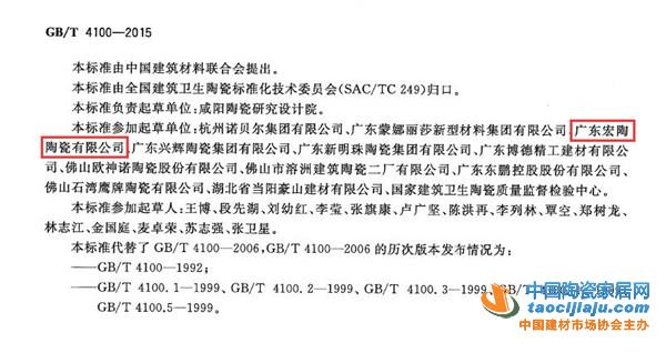 宏陶陶瓷參加起草的GB/T4100—2015《陶瓷磚》國家標(biāo)準(zhǔn)發(fā)布