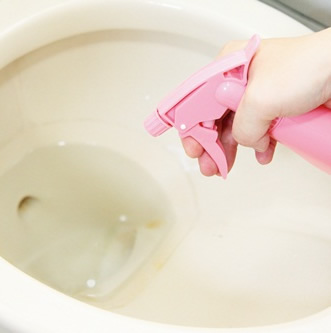 5. 在馬桶的外側(cè)擦上消毒液,水箱、沖水按鈕、馬桶邊緣、馬桶墊圈,一個地方都不可遺漏。