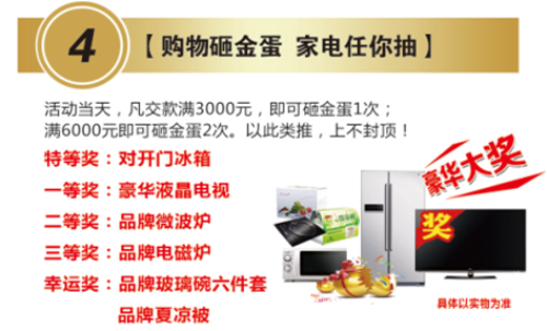 四、購(gòu)物砸金蛋,家電任你抽:品牌冰箱、液晶電視等豪華家電等您來(lái)?yè)尅?/span>