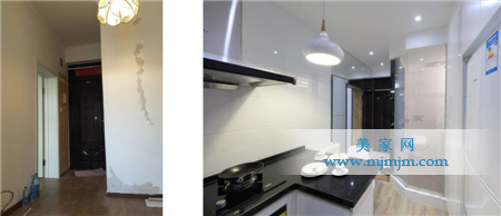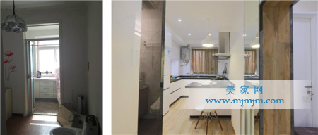 進門的設(shè)計,打破了以前那種糟糕的狀態(tài),拆除以后空間變得很大,讓光線都直射廚房。