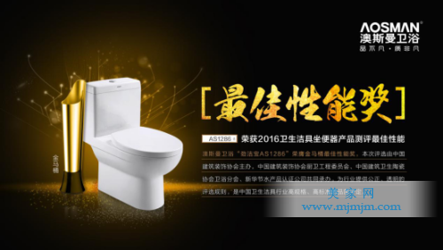 1月12日晚,2016年衛(wèi)生潔具坐便器、廚衛(wèi)水龍頭、花灑產(chǎn)品測評及調(diào)研活動結果于在杭州召開的“第五屆中國房地產(chǎn)企業(yè)經(jīng)營管理創(chuàng)新大會暨中國房地產(chǎn)園區(qū)產(chǎn)業(yè)聯(lián)盟高峰論壇”中向全國知名的房地產(chǎn)企業(yè)發(fā)布,并頒發(fā)獎牌及“金馬桶”獎杯。其中,【澳斯曼勁潔寶AS1286】憑借其強大的綜合性能,一舉斬獲最佳性能獎,再次體現(xiàn)了澳斯曼產(chǎn)品的非凡品質(zhì),奠定了澳斯曼衛(wèi)浴在行業(yè)內(nèi)的領先地位。