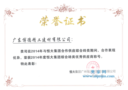 廣東博德精工建材有限公司榮獲恒大集團“優(yōu)秀戰(zhàn)略合作伙伴”稱號