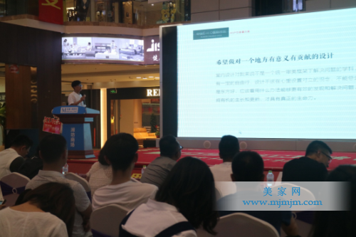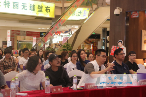 活動正式開始,來自山東濰坊的四位設計師,濰坊九木裝飾有限公司設計師王程、凱得設計有限公司設計師賈強、凱得設計有限公司設計師于振杰、柏諾裝飾有限公司設計師王萌,通過抽簽決定依次上臺演講的順序。