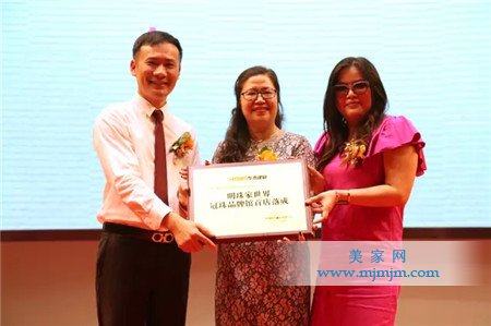 集團(tuán)副總裁陳先輝(中)授予增城華泰建材總經(jīng)理何兆雄(左)“明珠家世界冠珠品牌館首家體驗(yàn)館”牌匾