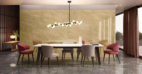 道格拉斯Extended超級(jí)板材以天然大理石為藍(lán)本,利用高清3D噴墨打印技術(shù)真實(shí)還原天然石材紋理,大面積鋪貼瓷磚,留縫少、縫隙小,無(wú)論縱向還是橫向鋪貼,可實(shí)現(xiàn)無(wú)縫銜接效果,順勢(shì)成為設(shè)計(jì)師們“新寵”。