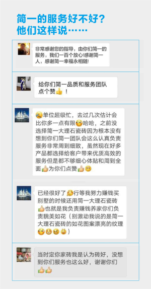 在此背景下,國(guó)內(nèi)大理石瓷磚品類的開創(chuàng)者,大理石瓷磚高端品牌,簡(jiǎn)一已率先步入服務(wù)升級(jí)行列。