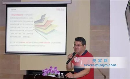會(huì)議首先由恊進(jìn)企業(yè)研發(fā)總監(jiān)樂紅軍先生做研發(fā)上的技術(shù)分享。在報(bào)告上先對市面上仿地毯/木材/石材瓷質(zhì)磚指出了美中不足,對自主研發(fā)的數(shù)碼立體噴釉瓷質(zhì)磚新產(chǎn)品做了拋磚引玉的介紹。